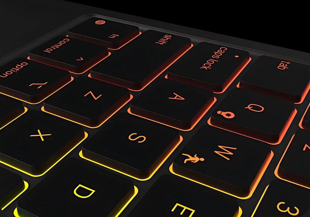 Use the shortcut keys at the top of the keyboard to easily adjust the backlit keys for typing in low-light conditions. The keys stand out from the darkness with 3 levels of brightness and 7 color options to help you stay focused any time, anywhere.